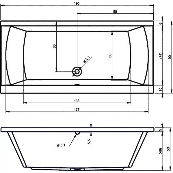 Материал непористый и гладкий, поэтому на нём не остаются известковый налёт и бактерии, поверхность ванны легко очищается.