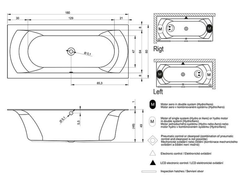Акриловая ванна RIHO Linares 180x80 изготовлена из высококачественного листа акрила белого цвета, полностью армирована.