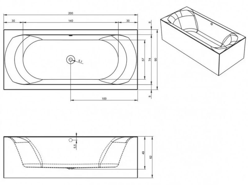 ?Длинная и короткая стороны ванны оснащены сразу отлитыми панелями, изготовленными из того же акрилового материала, что и ванна. Всё идеально, никаких швов!