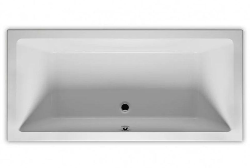 Прямоугольная? ванна RIHO Lugo 180x80 L Plug & Play, из глянцевого белого акрила с прямыми симметричными спинками, гладкой внутренней формой и центральным сливом, представляет собой полностью собранную на заводе конструкцию.