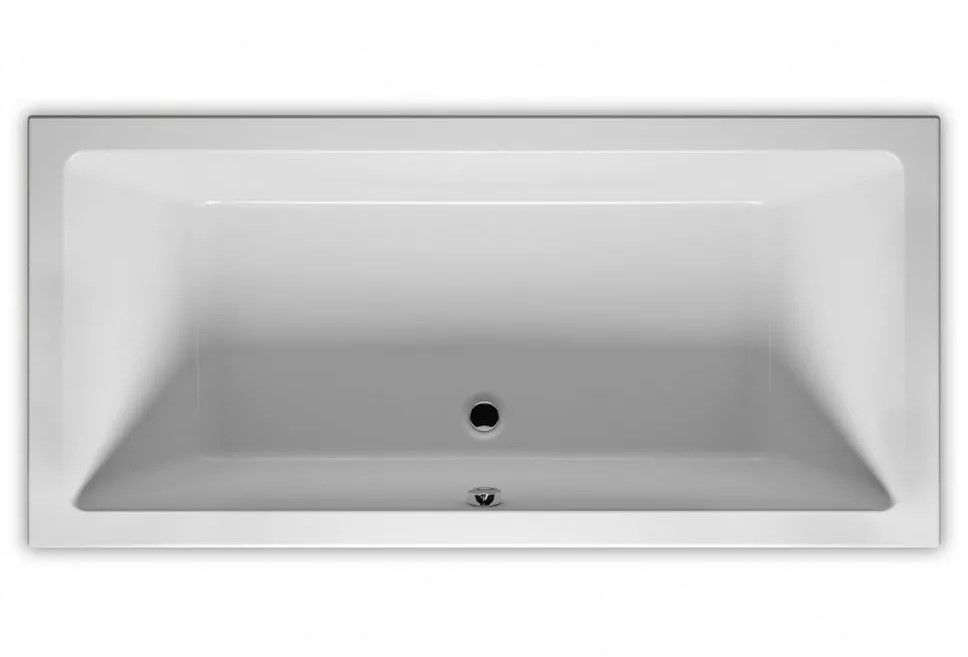 Прямоугольная? ванна RIHO Lugo 180x90 R Plug & Play, из глянцевого белого акрила с прямыми симметричными спинками, гладкой внутренней формой и центральным сливом, представляет собой полностью собранную на заводе конструкцию.