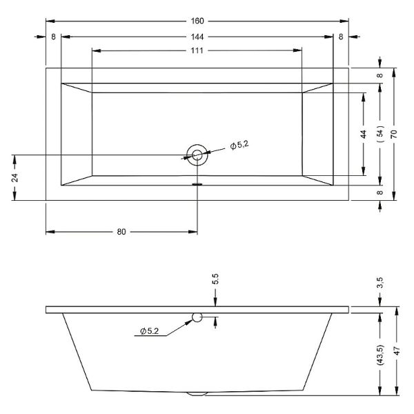 Акриловая ванна RIHO Lusso 160x70 изготовлена из высококачественного листа акрила белого цвета, полностью армирована.
