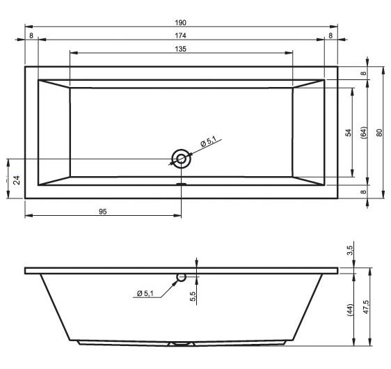 Материал непористый и гладкий, поэтому на нём не остаются известковый налёт и бактерии, поверхность ванны легко очищается.