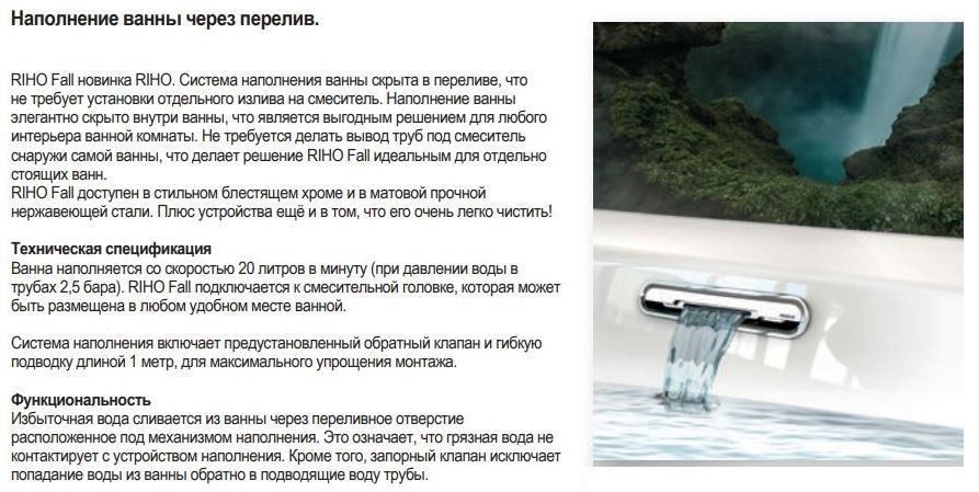 Riho Fall Система наполнения ванны через переливное отверстие (механизм смесителя приобретается отдельно)