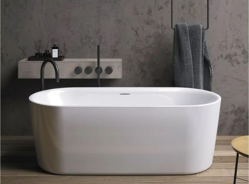 Отдельно стоящая белая матовая ванна RIHO Modesty 170х76 VELVET достойна своего названия: ванна сочетает в себе роскошный внешний вид с комфортом и удобством для пользователя, не будучи эксцентричной. Это ванна овальной формы с красивым тонким бортиком.