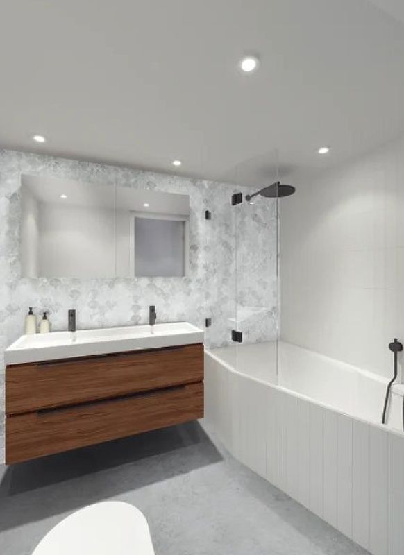 Тонкие борта ванны создают большое внутреннее пространство, где удобно лежать и принимать душ.