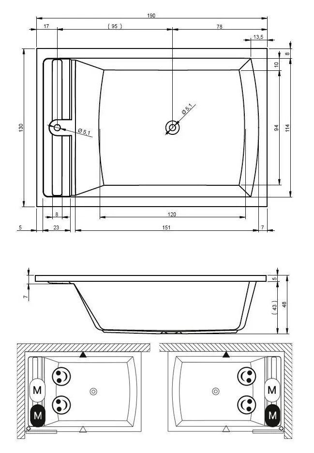 Материал непористый и гладкий, поэтому на нём не остаются известковый налёт и бактерии, поверхность ванны легко очищается.