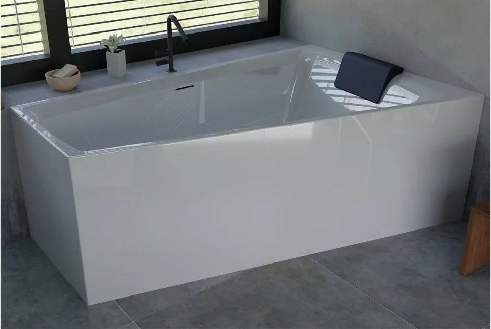 Встраиваемая акриловая асимметричная ванна RIHO Still Smart 170x110L Fall с удобным просторным местом для лежания.RIHO Fall - наполнение ванны через переливное отверстие. Носик смесителя - внутри ванны.