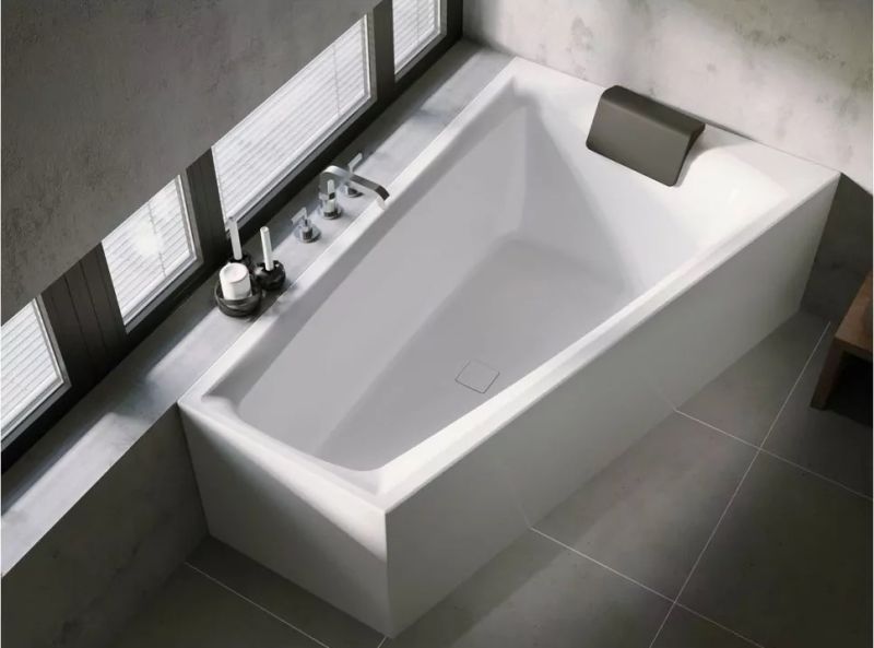 Ванна экономит много места благодаря скошенной форме у изножья.