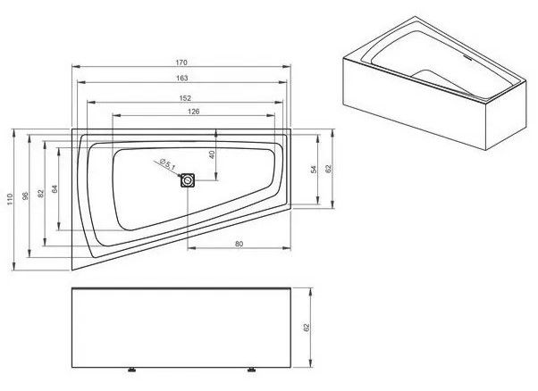 Отдельно стоящая асимметричная ванна RIHO Still Smart 170x110 R PLUG & PLAY, из глянцевого белого акрила, которая имеет очень удобную и просторную лежачую сторону. Ванна не занимает много места в ванной комнате благодаря скошенной форме ножной части.