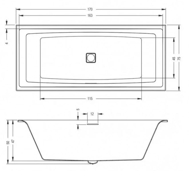 Отдельно стоящая прямоугольная ванна RIHO Still Square 170x75 R PLUG & PLAY FALL, с нижним бортиком, изготовлена из белого глянцевого акрила. Тонкие борта ванны создают большое внутреннее пространство, где удобно лежать и принимать душ.
