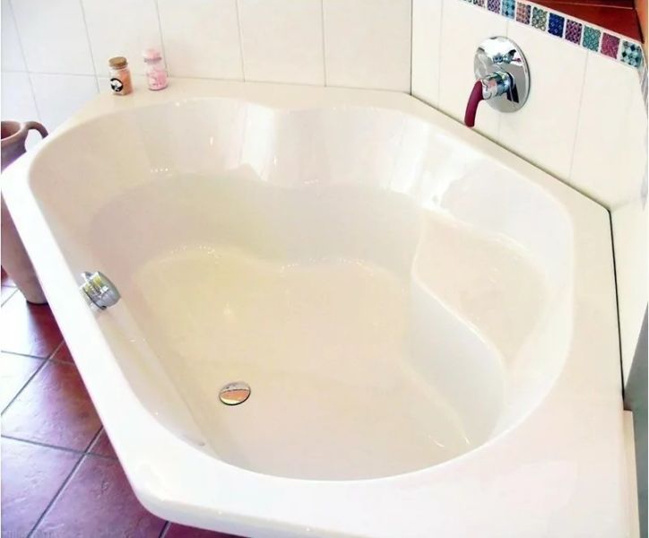 Материал непористый и гладкий, поэтому на нём не остаются известковый налёт и бактерии, поверхность ванны легко очищается.