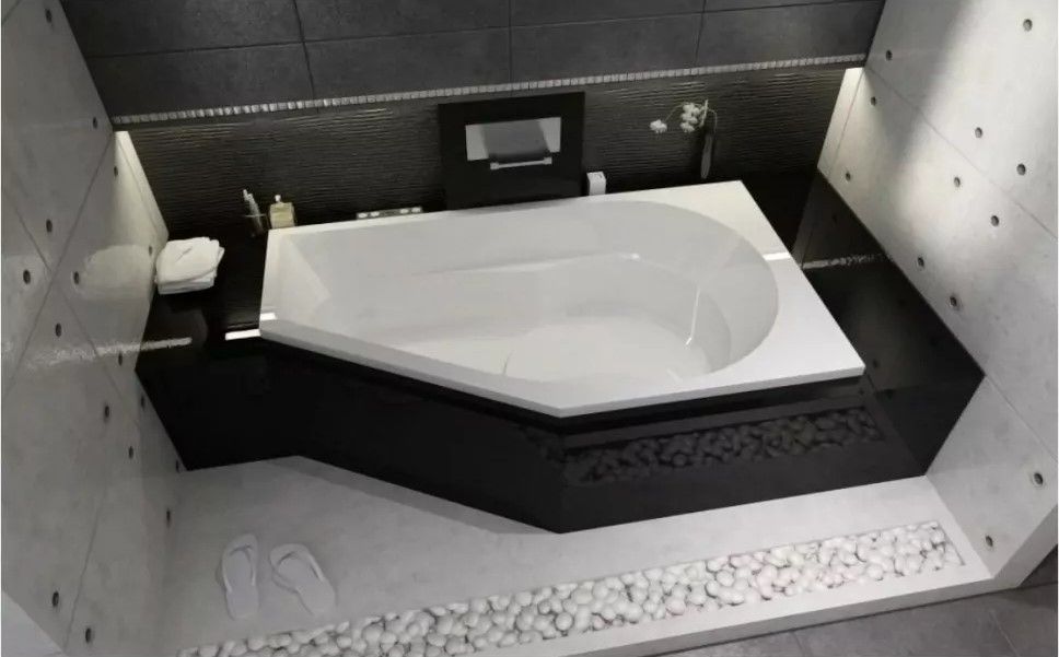 Асимметричная акриловая ванна RIHO Yukon 160x90L изготовлена из высококачественного листа акрила глянцевого белого цвета.