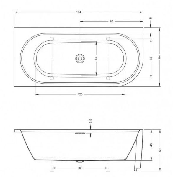 Щелевое отверстие перелива может быть использовано для встроенного наполнителя ванны Riho Fall (приобретается отдельно)