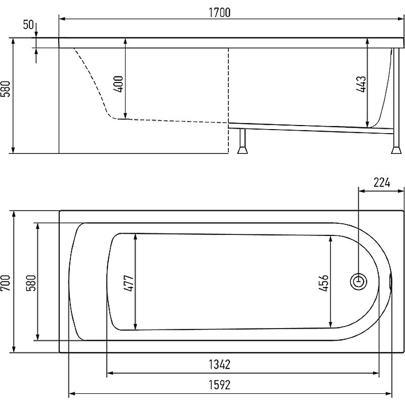 Акриловая ванна Timo Mika MIKA1770 170x70 см