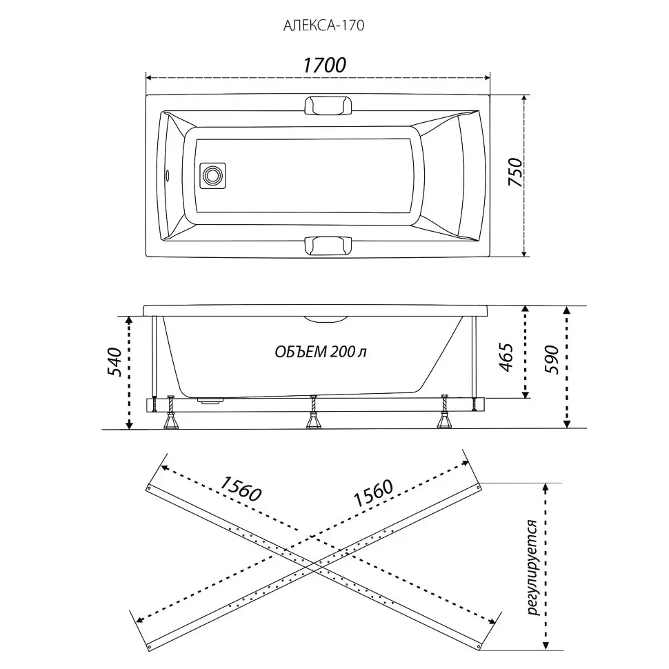 Акриловая ванна Triton Алекса Щ0000049498 170x75 см на Х-каркасе белый купить