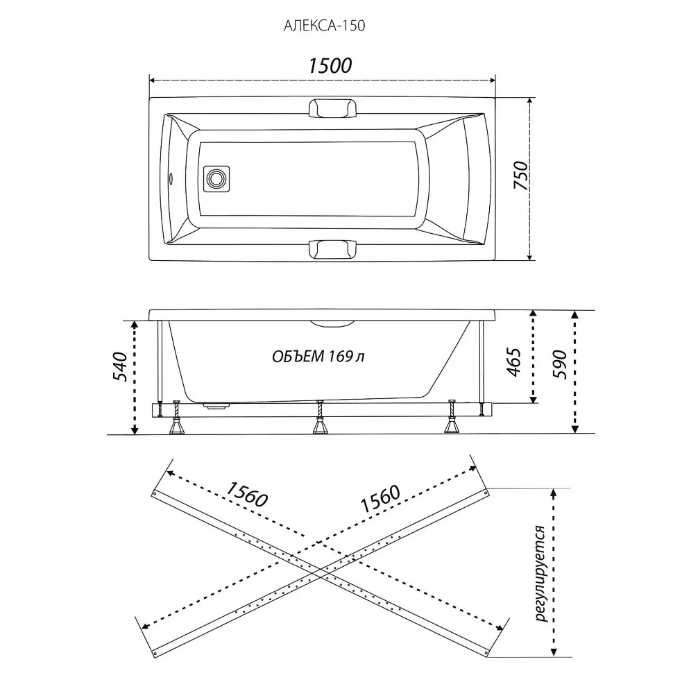 Акриловая ванна Triton Алекса Щ0000049500 150x75 см на Х-каркасе белый купить