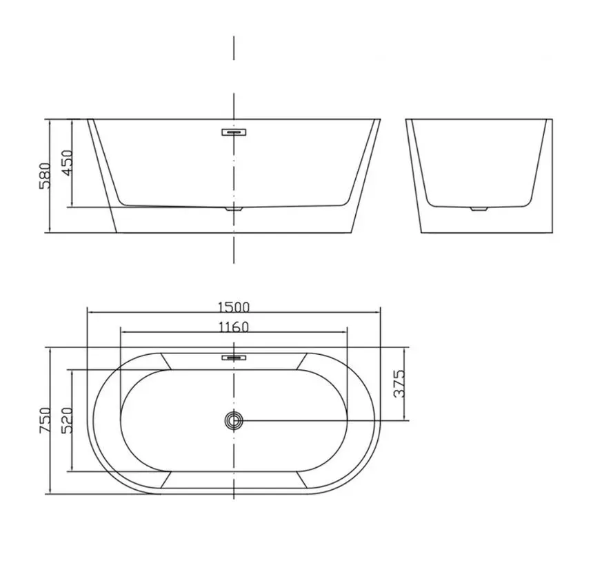 • Расположение слива: по центру.