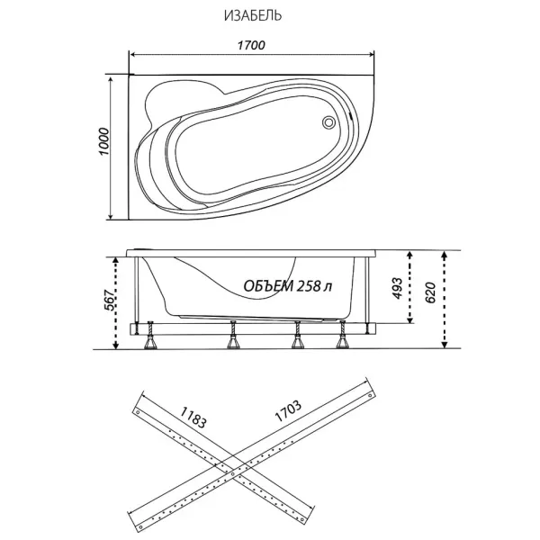 Акриловая ванна Triton Изабель Щ0000048750 правая 170x100 см на Х-каркасе белый купить