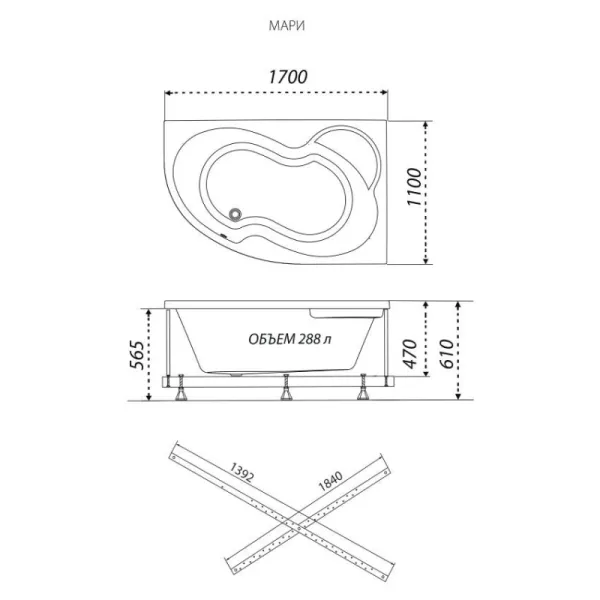 Акриловая ванна Triton Мари Щ0000046666 левая 170x110 см на Х-каркасе белый