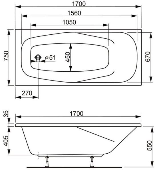 Стандартные размеры, см:170x75