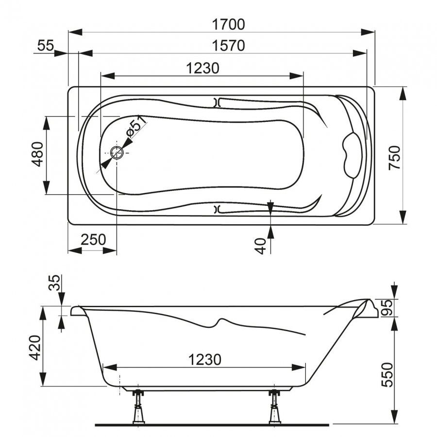 Стандартные размеры, см:170x75