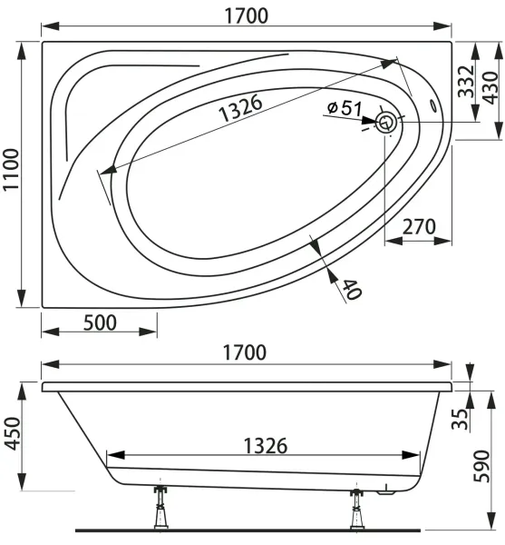 Акриловая ванна VagnerPlast Hapi VPBA170HAP3LX-04 левая 170x110см белый