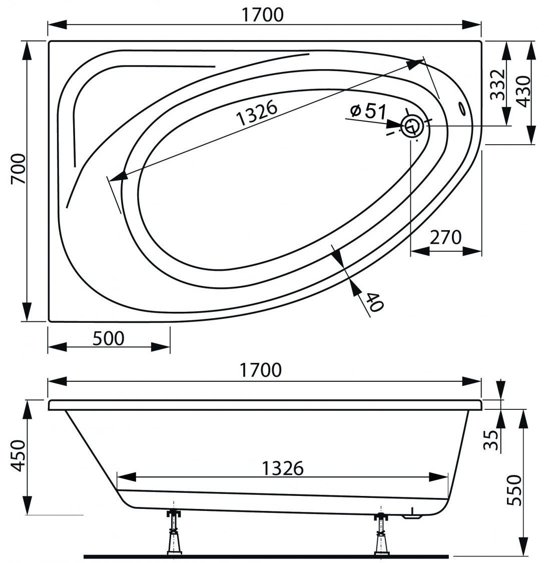 Акриловая ванна VagnerPlast Hapi VPBA170HAP3PX-04 правая 170x110см белый купить