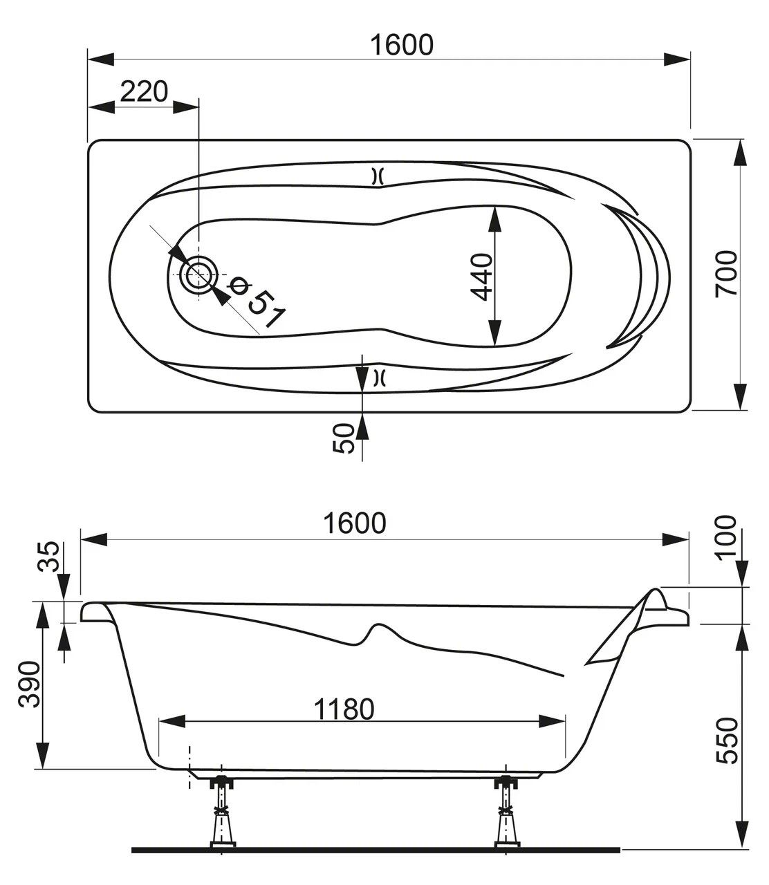 Акриловая ванна VagnerPlast Kleopatra VPBA167KLE2X 160x70см белый