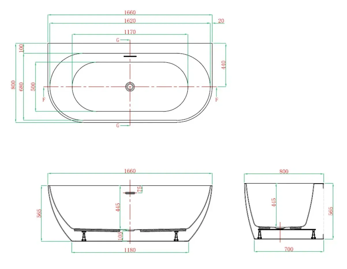 • Расположение слива - по центру