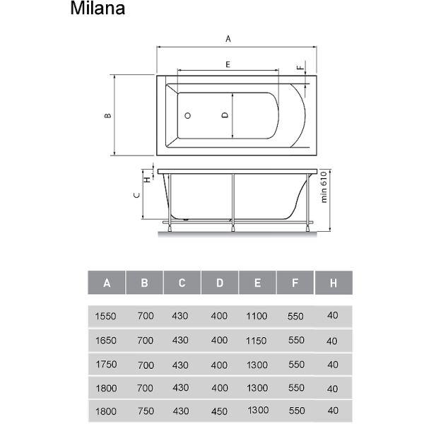 Акриловая ванна Vayer Milana 165x70 Гл000022941 без гидромассажа