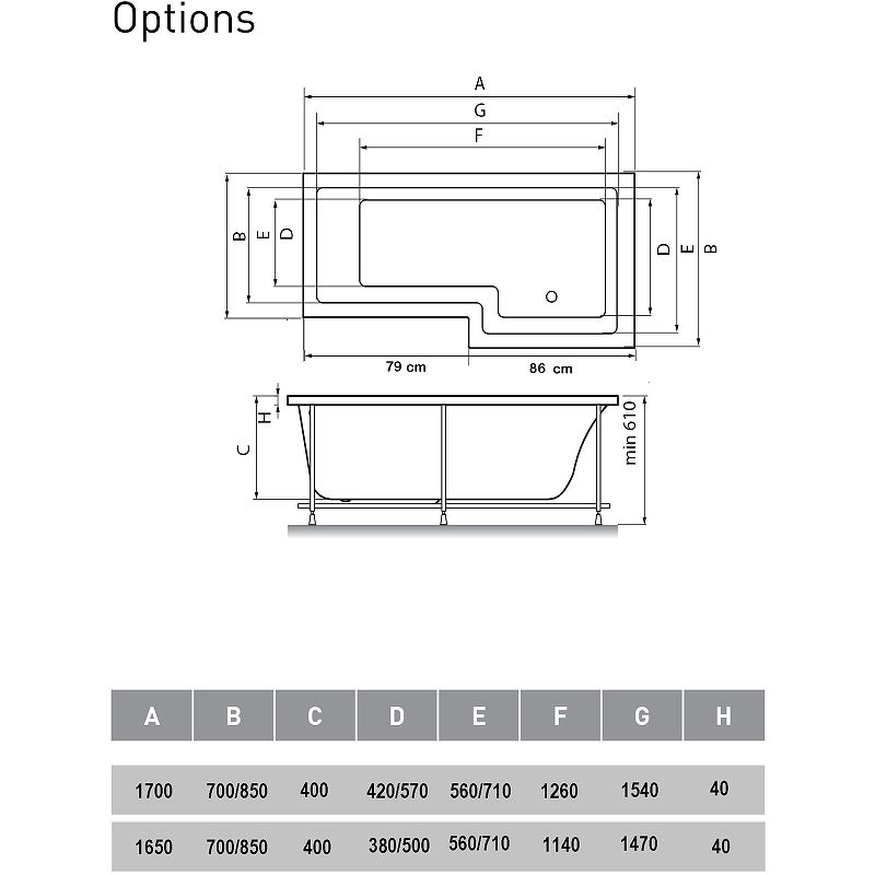 Акриловая ванна Vayer Options 165x85 L Гл000023294 без гидромассажа купить