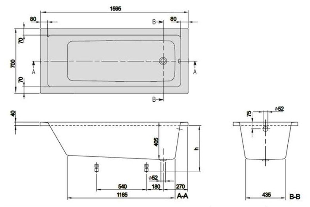 Акриловая ванна Villeroy Boch Targa Plus Solo UBA167NES2V01+U99740000 160х70 см ножки в комплектеРазмер: 160х70х42 см