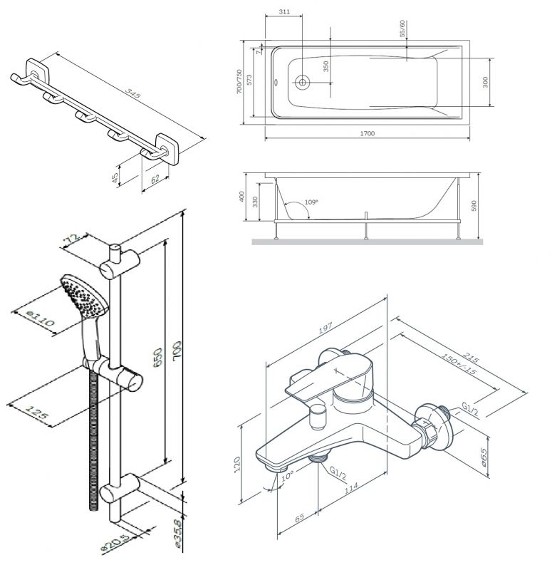 В комплекте поставки:акриловая ванна AM PM Gem 170х70 W90A-170-070W-A;