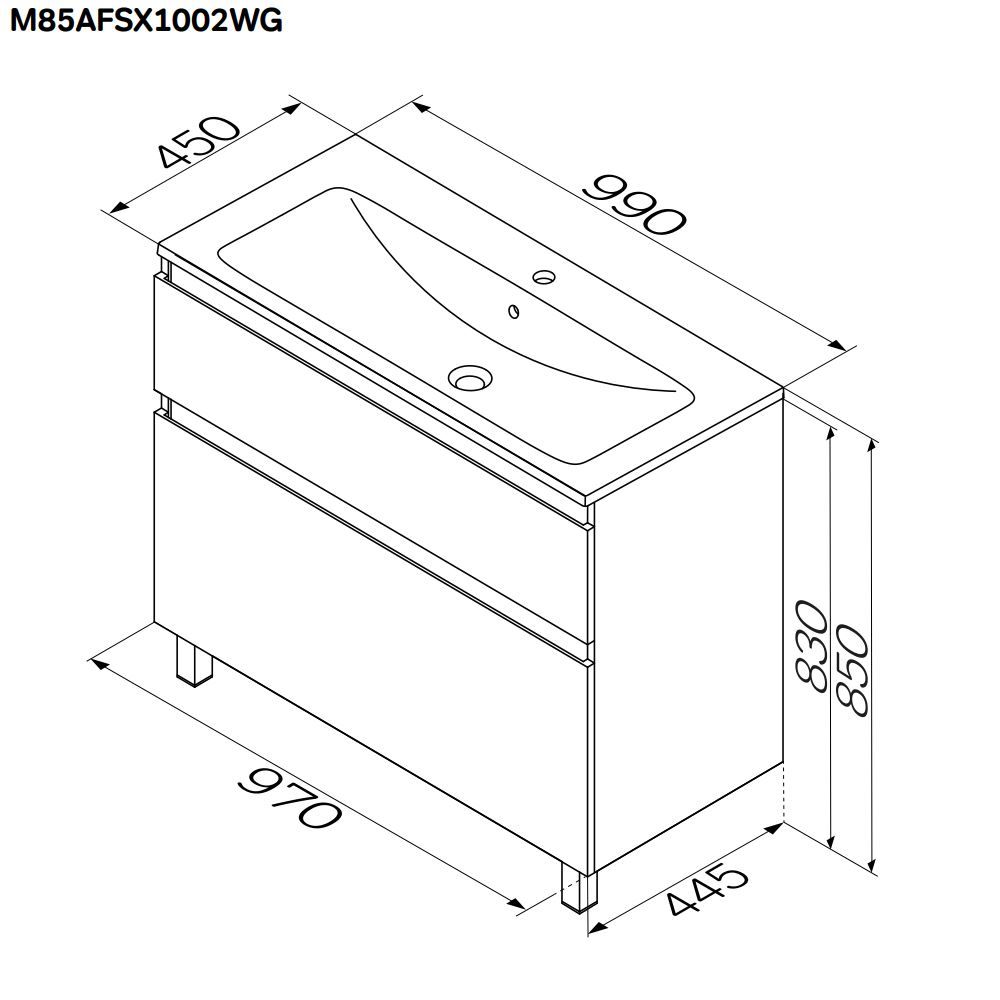 Am.pm X-JOY M85AFSX1002WG тумба под раковину 100 см 2 ящика белый глянец