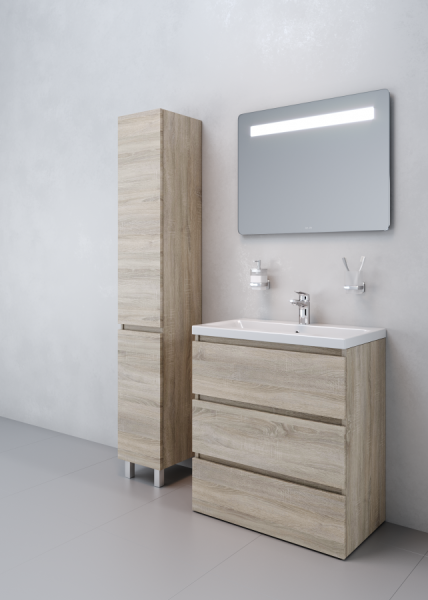 Уникальный нижний ящик базы может быть использован как: выдвижная подставка для детей, для удобного мытья рук (выдерживает нагрузку до 60 кг), дополнительная ниша для хранения (экономия пространства ванной комнаты). Ящики с антискользящим покрытием цвета антрацит – европейский стандарт.