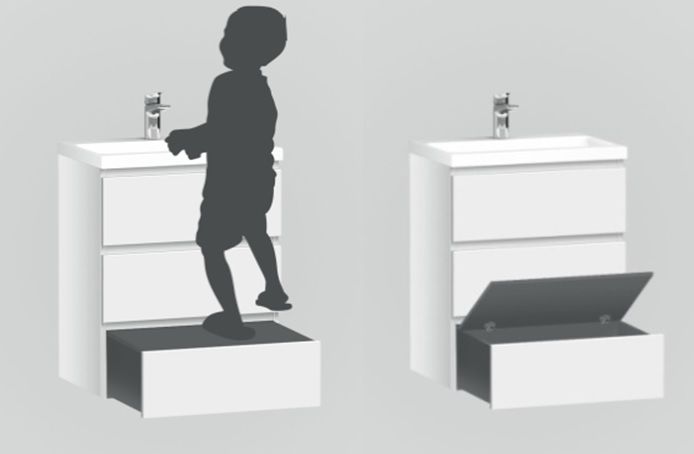 Современный европейский дизайн от DanelonMeroni (Великобритания/Италия). Уникальный нижний ящик базы может быть использован как: выдвижная подставка для детей, для удобного мытья рук (выдерживает нагрузку до 60 кг); дополнительная ниша для хранения (экономия пространства ванной комнаты).