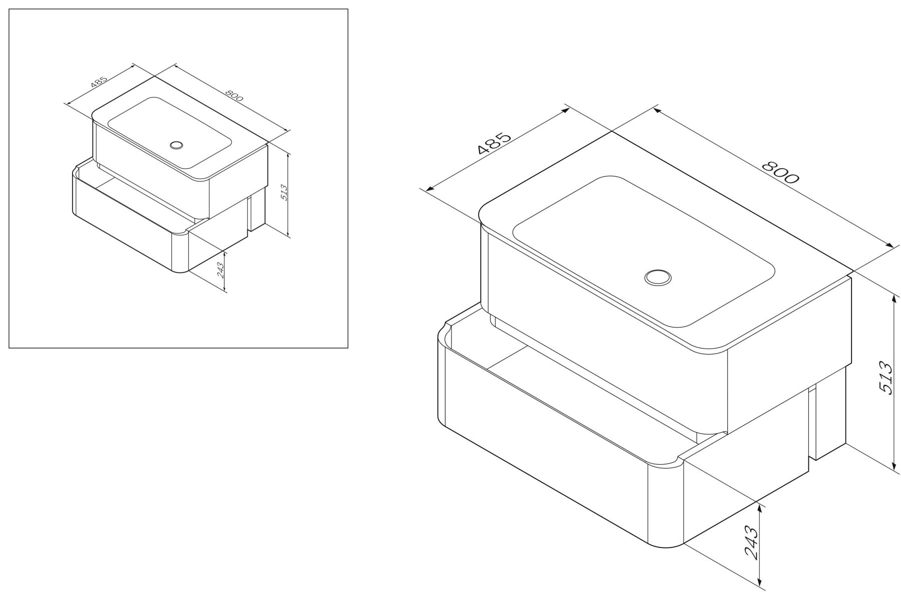 Эксклюзивное дизайнерское решение: боковые стенки и фасад представляют собой единое целое, предоставляя ящикам возможность полного выдвижения