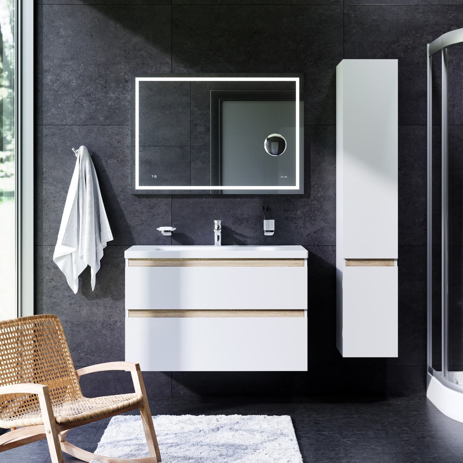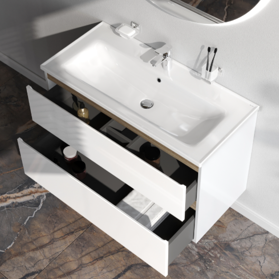 может позволит себе каждый. Самое эстетичное сочетание цветов и фактур от дизайн-бюро Danelon Meroni (Великобритания & Италия): белые глянцевые фасады дополнены отделкой под светлое дерево.Функциональный органайзер в первом ящике позволит хранить необходимые косметические средства под рукой и в полном порядке. Внутреннее покрытие каждого ящика выполнено в современном