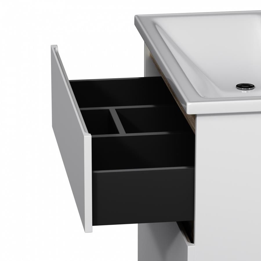 может позволит себе каждый. Самое эстетичное сочетание цветов и фактур от дизайн-бюро Danelon Meroni (Великобритания & Италия): белые глянцевые фасады дополнены отделкой под светлое дерево.Функциональный органайзер в первом ящике позволит хранить необходимые косметические средства под рукой и в полном порядке. Внутреннее покрытие каждого ящика выполнено в современном