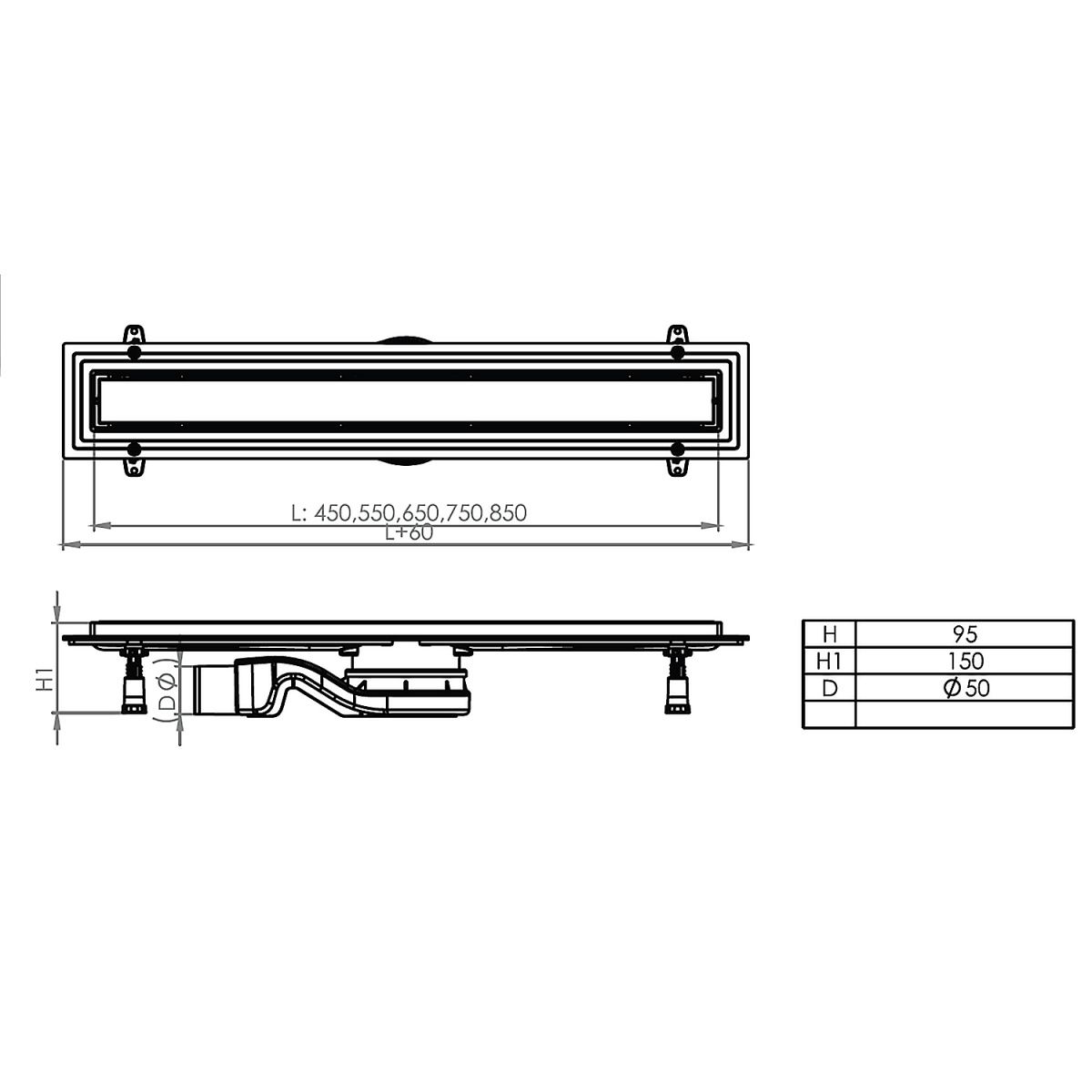 AZARIO AZ1105-00155 душевой лоток 550 мм с решеткой под плитку, хром матовый