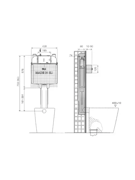 Бачок сливной OLI 74 (для скрытого монтажа, под пневматическую панель слива).