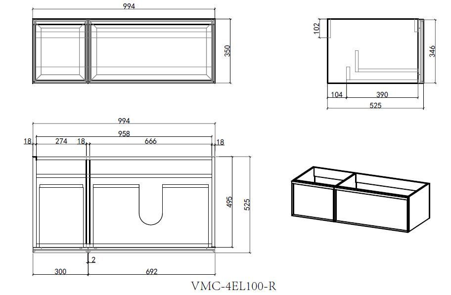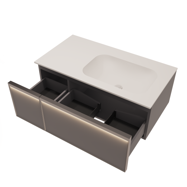 База под раковину Vincea Elise 1000 подвесная, правая, 2 выкатных ящика soft-close, серый матовый