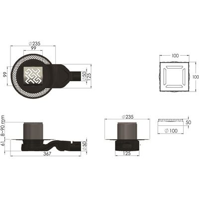 Решетка толщина 3мм, нержавеющая сталь AISI 304 Горловина трапа, пластик Фланец трапапа с переходником, РР Монтажная заглушка, PP Самопромывной S-образный сифон PP: горизонтальный выпуск D50 H60, пропускная способность 42л/мин, монтаж 360° Монтажный ключ, пластик