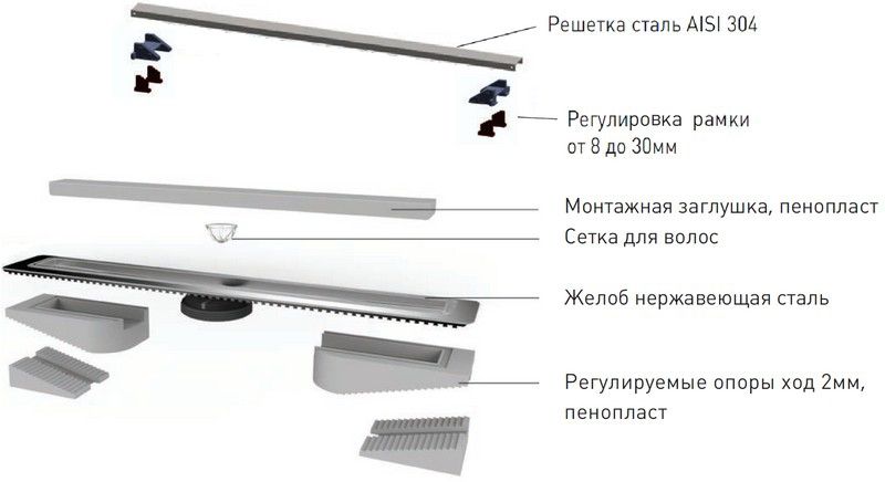 Душевой лоток Berges Wasserhaus C1 Brise 090031 60 Матовый хром – является надежным дренажным устройством в составе современной системы водоотведения. Страна изготовления – Германия, коллекция C1 Brise.Berges Wasserhaus C1 Brise 090031 60 Матовый хром выполнен в одном корпусе с гидрозатвором, благодаря чему достигается герметичность изделия и создается надежный барьер против запахов из системы канализации. Прямоугольную форму решетки сантехнического устройства Berges Wasserhaus можно удачно обыграть при установке устройства вдоль стен, рядом с перегородкой и т.д. Видимая часть конструкции изготовлена из полированной нержавеющей стали, которая отлично сочетается с другими элементами коллекции C1 Brise. Габаритные размеры изделия составляют 69.50х12.10 см при максимальной длине и ширине внешней части 60.0х4.4 см. Дренажное устройство производства Berges Wasserhaus имеет минимальную высоту – тем самым достигается простота установки путем встраивания в пол ванной. Конструкцией предусмотрен вертикальный выпуск сточных вод. Этим достигается высокая пропускная способность лотка Berges Wasserhaus C1 Brise 090031 60 Матовый хром и возможность монтажа в любом месте, независимо от схемы разводки канализационных труб. Пластик, из которого сделан патрубок и элементы слива дренажного устройства Berges Wasserhaus, не боится вредного воздействия влаги, бытовой химии, высокой температуры и прочих разрушающих факторов. Хром матовый цвет наружной решетки лотка Berges Wasserhaus прекрасно сочетается с другими элементами коллекции C1 Brise