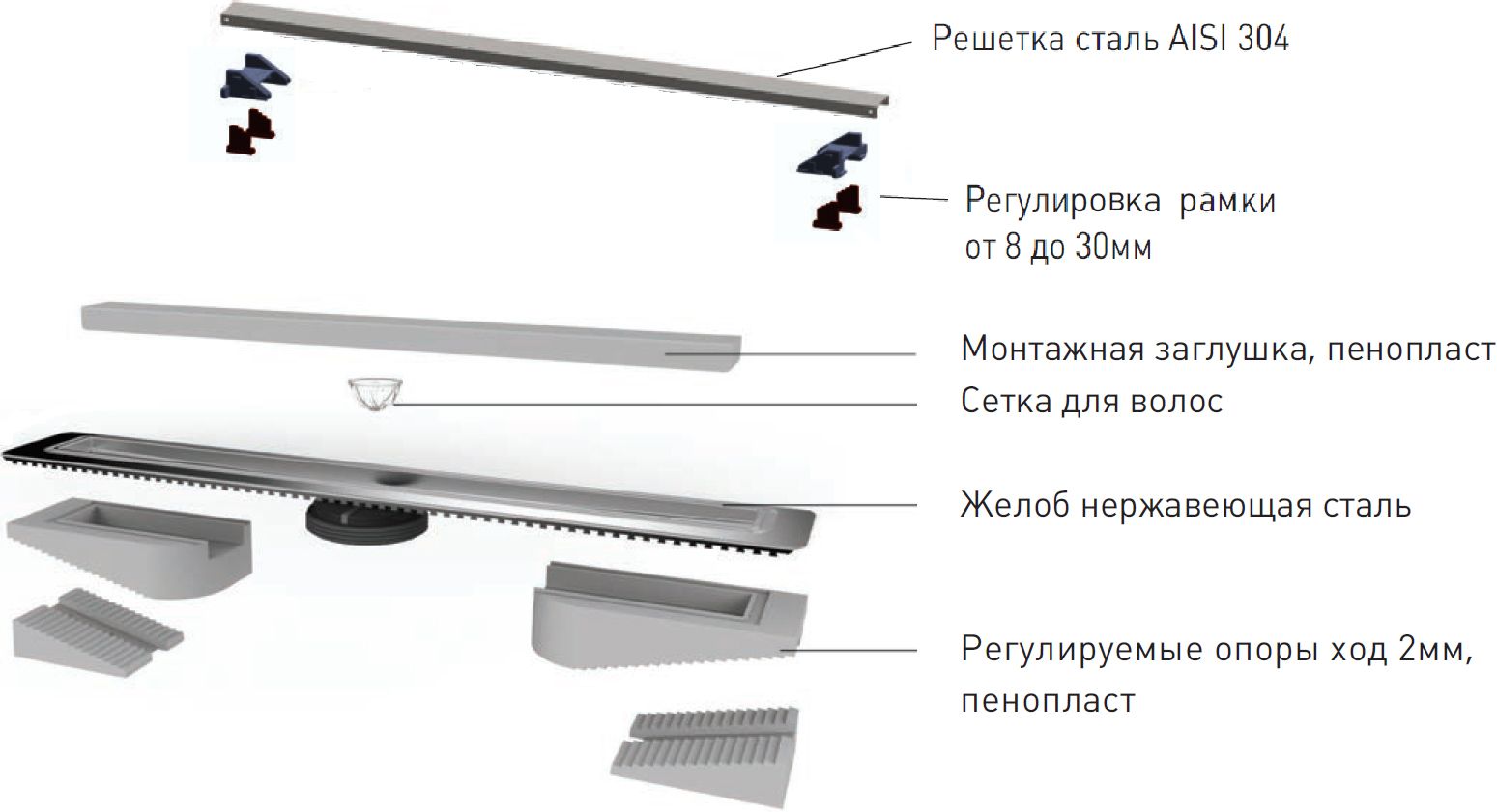 Душевой лоток Berges Wasserhaus C1 Norma 090139 80 Матовый хром купить