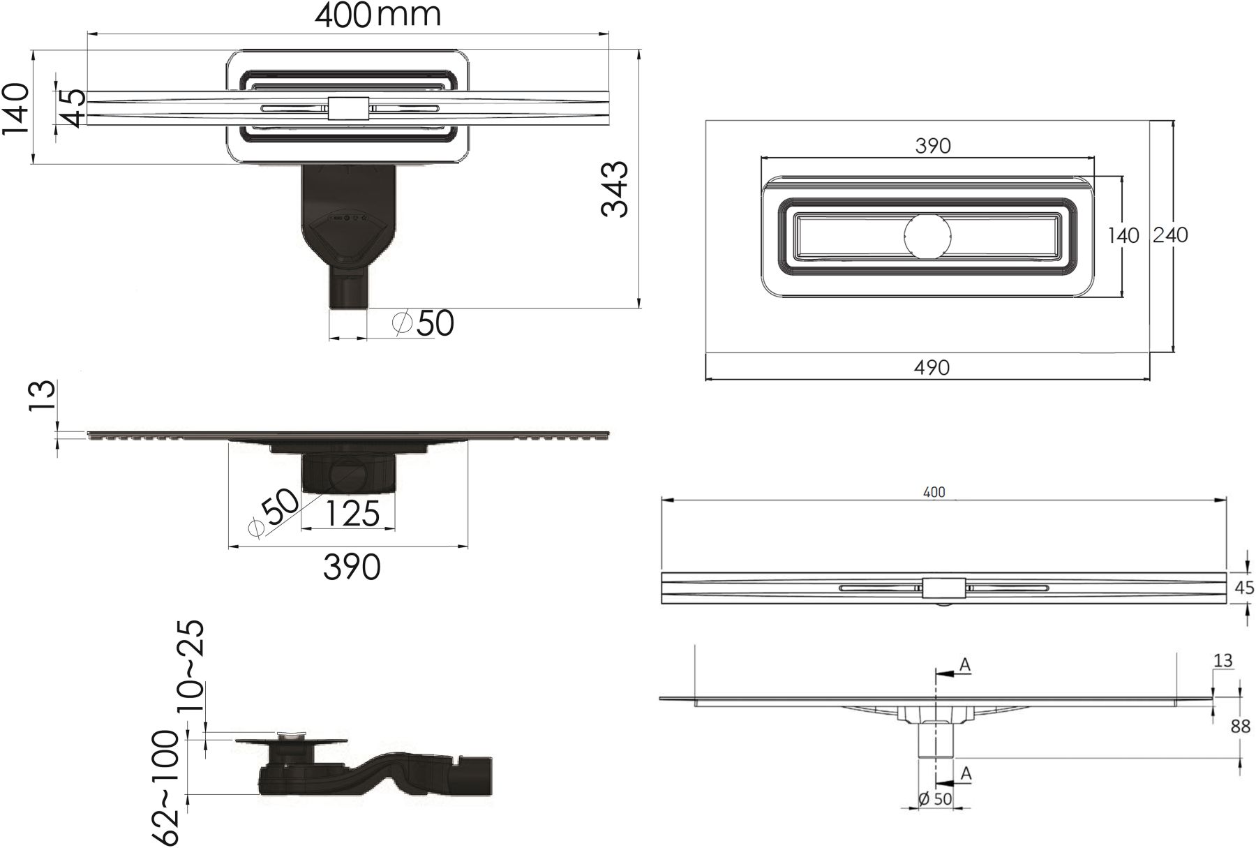 Душевой лоток Berges Wasserhaus Simpel 090110 40 Матовый хром