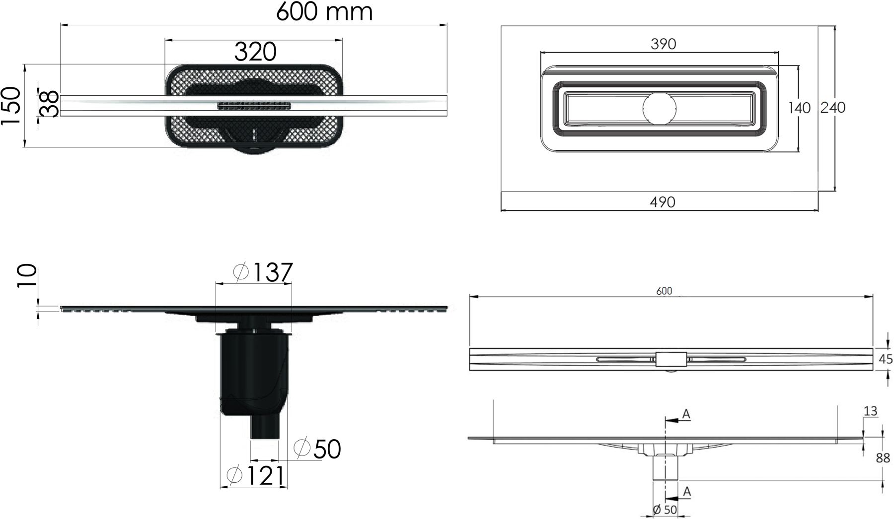 Душевой лоток Berges Wasserhaus Simpel 090011 60 Матовый хром – является надежным дренажным устройством в составе современной системы водоотведения. Страна изготовления – Германия, коллекция Simpel.Berges Wasserhaus Simpel 090011 60 Матовый хром выполнен в одном корпусе с гидрозатвором, благодаря чему достигается герметичность изделия и создается надежный барьер против запахов из системы канализации. Прямоугольную форму решетки сантехнического устройства Berges Wasserhaus можно удачно обыграть при установке устройства вдоль стен, рядом с перегородкой и т.д. Видимая часть конструкции изготовлена из полированной нержавеющей стали, которая отлично сочетается с другими элементами коллекции Simpel. Габаритные размеры изделия составляют 60.00х4.50 см при максимальной длине и ширине внешней части 60.0х4.5 см. Дренажное устройство производства Berges Wasserhaus имеет минимальную высоту – тем самым достигается простота установки путем встраивания в пол ванной. Конструкцией предусмотрен вертикальный выпуск сточных вод. Этим достигается высокая пропускная способность лотка Berges Wasserhaus Simpel 090011 60 Матовый хром и возможность монтажа в любом месте, независимо от схемы разводки канализационных труб. Пластик, из которого сделан патрубок и элементы слива дренажного устройства Berges Wasserhaus, не боится вредного воздействия влаги, бытовой химии, высокой температуры и прочих разрушающих факторов. Хром матовый цвет наружной решетки лотка Berges Wasserhaus прекрасно сочетается с другими элементами коллекции Simpel.