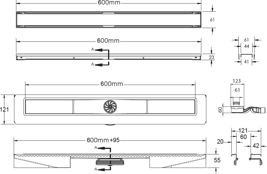 Душевой лоток Berges Wasserhaus B1 Antik 090124 60 Матовый хром – является надежным дренажным устройством в составе современной системы водоотведения. Страна изготовления – Германия, коллекция B1 Antik.Berges Wasserhaus B1 Antik 090124 60 Матовый хром выполнен в одном корпусе с гидрозатвором, благодаря чему достигается герметичность изделия и создается надежный барьер против запахов из системы канализации. Прямоугольную форму решетки сантехнического устройства Berges Wasserhaus можно удачно обыграть при установке устройства вдоль стен, рядом с перегородкой и т.д. Видимая часть конструкции изготовлена из полированной нержавеющей стали, которая отлично сочетается с другими элементами коллекции B1 Antik. Габаритные размеры изделия составляют 69.50х12.10 см при максимальной длине и ширине внешней части 60.0х6.1 см. Дренажное устройство производства Berges Wasserhaus имеет минимальную высоту – тем самым достигается простота установки путем встраивания в пол ванной. Конструкция имеет горизонтальный выпуск для прямого вывода стоков в канализацию. Высокая пропускная способность делает лоток Berges Wasserhaus B1 Antik 090124 60 Матовый хром одним из лучших вариантов при эксплуатации как в частных домовладениях, так и помещениях коммерческого назначения – банях, душевых спортзалов и т.д. Пластик, из которого сделан патрубок и элементы слива дренажного устройства Berges Wasserhaus, не боится вредного воздействия влаги, бытовой химии, высокой температуры и прочих разрушающих факторов. Хром матовый цвет наружной решетки лотка Berges Wasserhaus прекрасно сочетается с другими элементами коллекции B1 Antik.