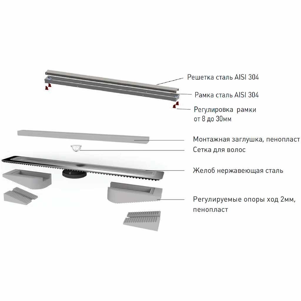 Душевой лоток Berges Wasserhaus B1 Keramik 091118 70 Хром глянец – является надежным дренажным устройством в составе современной системы водоотведения. Страна изготовления – Германия, коллекция B1 Keramik.Berges Wasserhaus B1 Keramik 091118 70 Хром глянец выполнен в одном корпусе с гидрозатвором, благодаря чему достигается герметичность изделия и создается надежный барьер против запахов из системы канализации. Прямоугольную форму решетки сантехнического устройства Berges Wasserhaus можно удачно обыграть при установке устройства вдоль стен, рядом с перегородкой и т.д. Видимая часть конструкции изготовлена из полированной нержавеющей стали, которая отлично сочетается с другими элементами коллекции B1 Keramik. Габаритные размеры изделия составляют 79.50х12.10 см при максимальной длине и ширине внешней части 70.0х6.1 см. Дренажное устройство производства Berges Wasserhaus имеет минимальную высоту – тем самым достигается простота установки путем встраивания в пол ванной. Конструкция имеет горизонтальный выпуск для прямого вывода стоков в канализацию. Высокая пропускная способность делает лоток Berges Wasserhaus B1 Keramik 091118 70 Хром глянец одним из лучших вариантов при эксплуатации как в частных домовладениях, так и помещениях коммерческого назначения – банях, душевых спортзалов и т.д. Пластик, из которого сделан патрубок и элементы слива дренажного устройства Berges Wasserhaus, не боится вредного воздействия влаги, бытовой химии, высокой температуры и прочих разрушающих факторов. Хром цвет наружной решетки лотка Berges Wasserhaus прекрасно сочетается с другими элементами коллекции B1 Keramik.